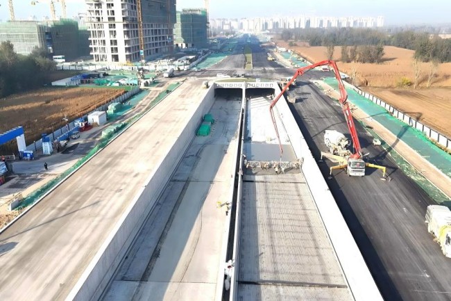济南市起步区黄河大道二期一标项目面对气温低、交叉施工等复杂的施工环境,通过优化施工组织、强化工序衔接,严格落实冬季施工保温措施,全力保障工程进度与质量。项目部将凝心聚力,在60天内完成所有地道防撞墙及铺装层、机动车道水稳基层及沥青中、下面层全部施工,勠力同心决胜收官之战。
