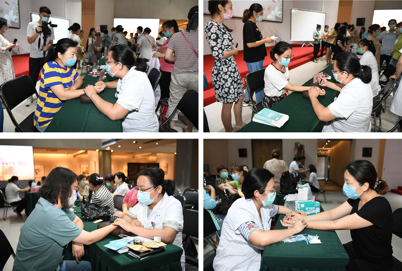 与此同时,济南市民族医院特派中医师为职工把脉义诊,他们还为职工带来了夏季常用的中药和热帖,当场诊断出处方,并把中药发放到职工手中,热帖直接贴到职工的穴位上。活动现场,气氛热烈,女职工们把专家们团团围住,把脉就诊、问询、预约、登记,活动从下午3点一直持续到5:40才结束。