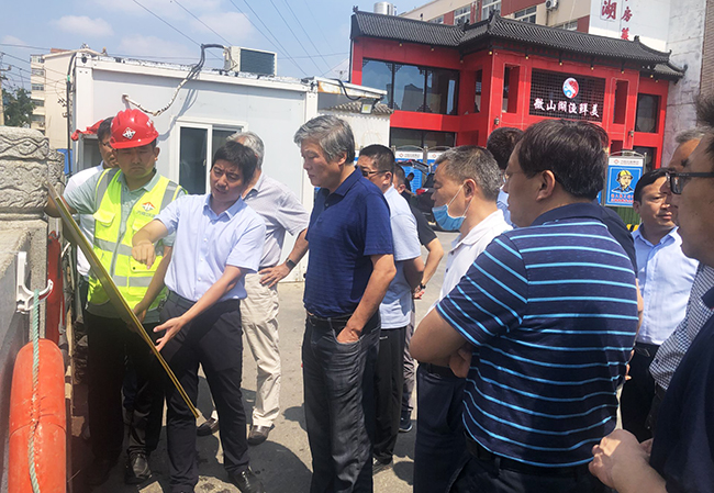 7月23日下午,济南市城乡水务局副局长朱丹彤察看集团参建的济南市全福河等河道生态补水工程项目。济南市排水服务中心主任姜向东、副主任崔忠,集团总工程师许庚等陪同。