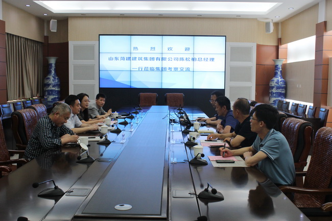 6月5日,山东菏建建筑集团有限公司总经理陈松柏一行来集团考察交流。集团党委副书记、副总经理刘相华,副总经理田国锋,以及相关部室负责人等在四楼会议室座谈交流。
