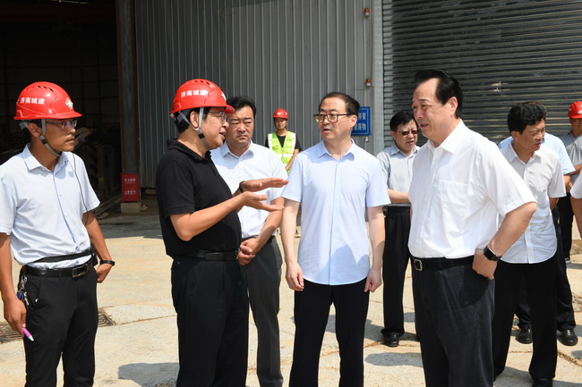 9月5日上午,济南市人大常委会主任殷鲁谦,副主任谭延伟、巩宪群、孙积港一行调研集团顺河快速路南延建设工程。市交通局局长贾玉良,副局长姜春华,集团党委副书记、总经理牟晓岩,以及相关单位负责人等陪同。