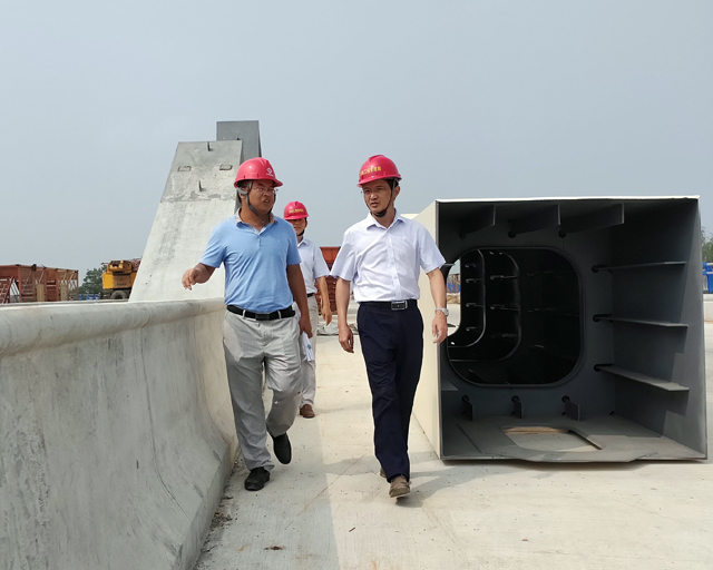 8月24日上午,宣城市住房和城乡建设局党组书记、局长盛浩,副局长袁忠国一行察看六分公司青弋江大道七标工程。