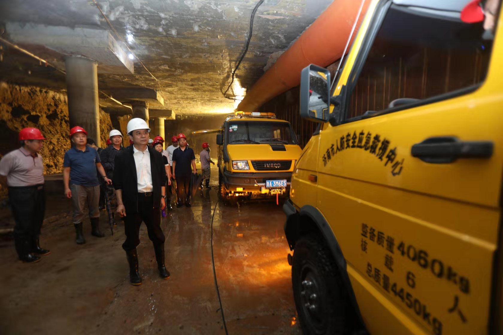 市人防办主任杨庆绪察看泺文路地下人防工程防汛工作