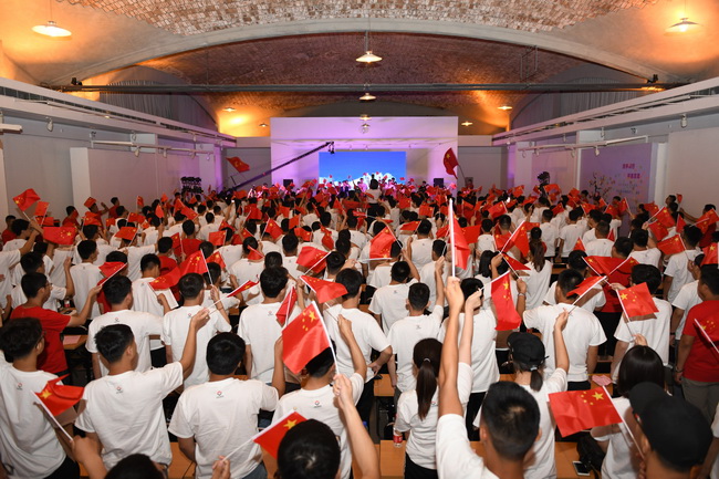 伴随着清脆悦耳的童声响起,以快闪形式展示的歌曲——“我和我的祖国”将入职见面会推向了高潮。100多名青年职工手持国旗,身着红色衣衫步入到会场的中间,瞬间点燃了整个展厅的热情。他们手舞着红旗,声情并茂地演唱着“我和我的祖国”赞歌,表达了对祖国的赞美和对集团蒸蒸日上发展的祝福。