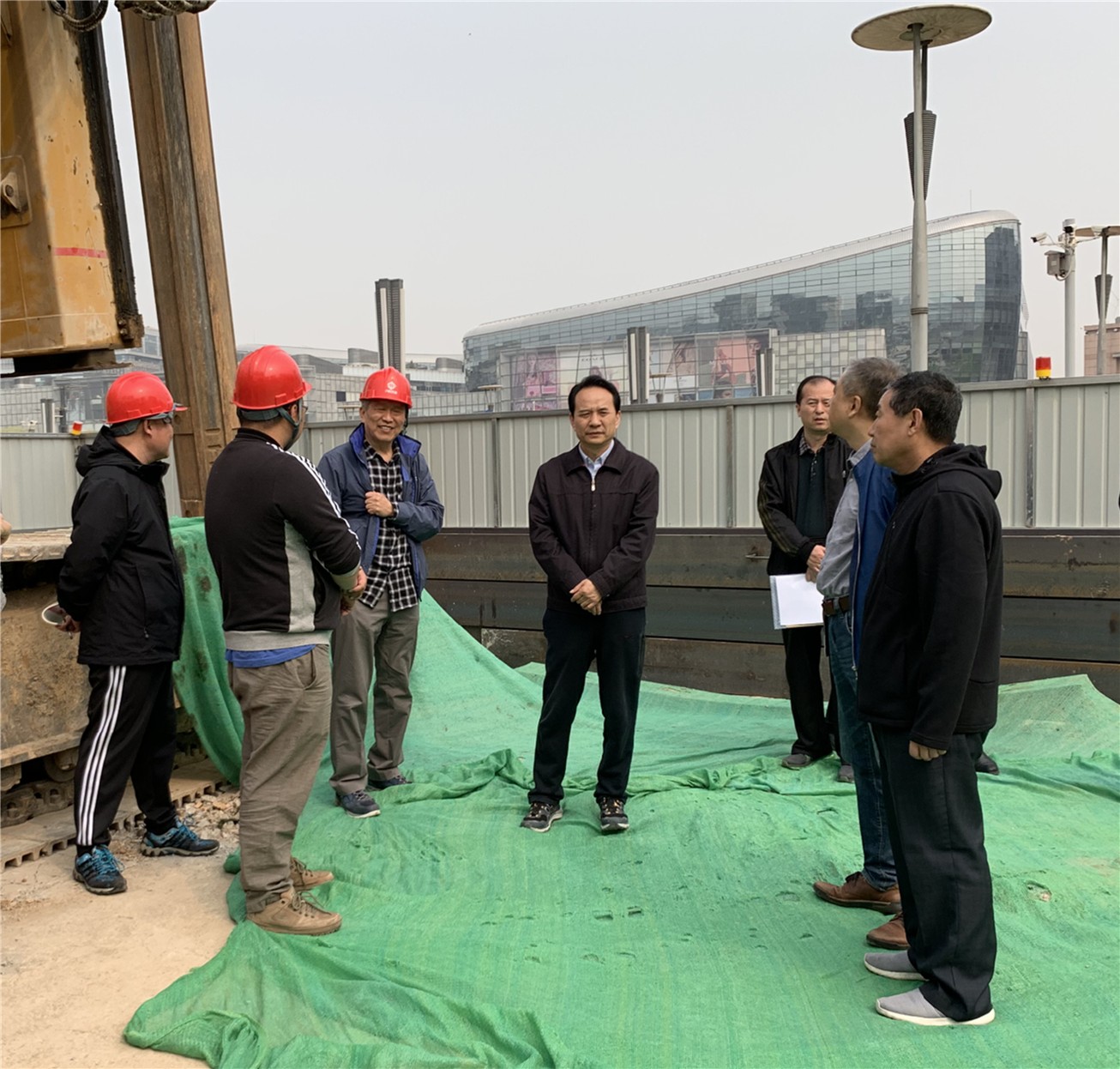 杨庆绪主任(中)在工地现场听取汇报