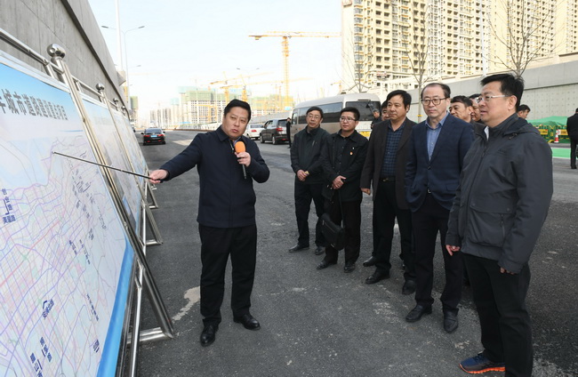 程德智书记一行先后察看了集团凤鸣路工程、凤凰路隧道工程和顺河快速路南延建设工程重点道路建设项目,听取了3条重点道路建设工程、两横三纵快速路网建设、城市道路建设等情况汇报。