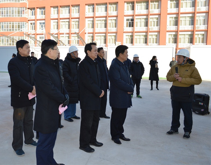 12月12日上午,济南市人大常委会副主任、城建环保委员会主任委员李胜利察看五分公司承建的济南市纬十二路人防综合体(0725)工程十九中配套工程。市人民防空办公室主任杨庆绪,集团副总经理马烽等参加活动。