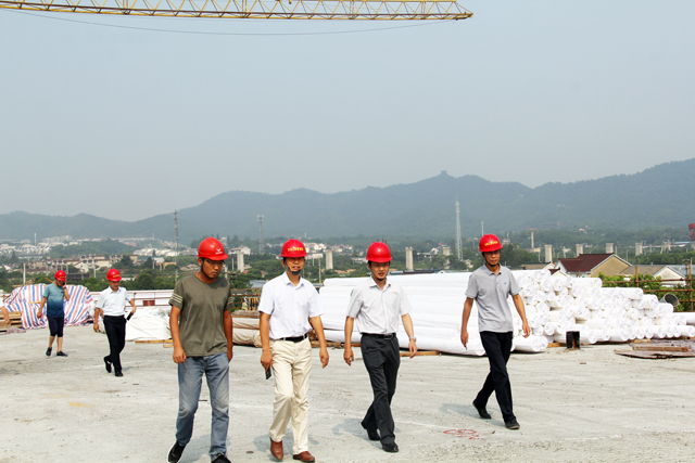 8月11日,宣城市住建委党组书记、主任盛浩,副主任袁忠国一行察看六分公司承建的宣城水阳江工程。