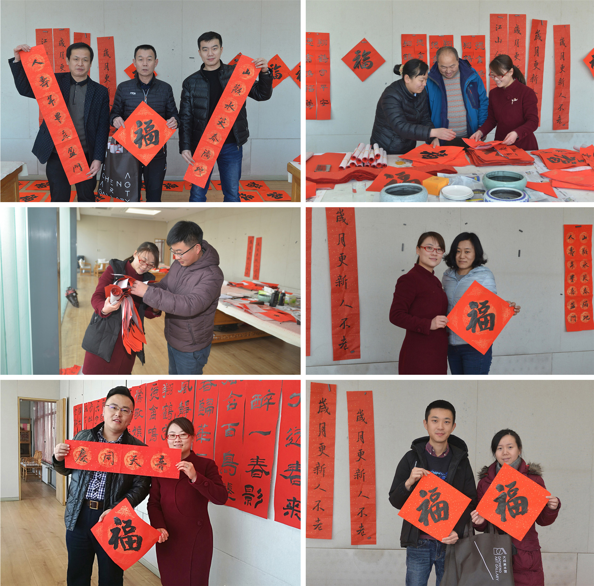与此同时,“过新年•送祝福”写春联公益活动也在美术馆五楼如火如荼地开展着。该活动受到了集团职工的广大好评,各单位职工纷纷预约领取春联。截止目前为止,写春联活动进行了半月有余,送出对联千余幅,福字六千余张,一幅幅寓意美好的春联、福字将集团广大干部职工最真挚的新年祝福带到施工一线,带给在祖国各地的家人们。