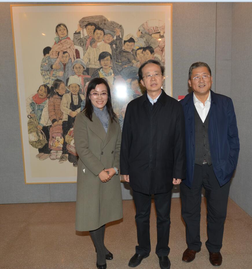 中国文联党组成员、副主席、书记处书记赵实走到张春艳《支教留念》作品前,与她亲切交谈,指出这幅入选十二届全国美展的作品她记忆犹新,高度评价这幅作品有道德,有筋骨,有温度,在笔墨手法和笔墨语言上都表现得非常好,弘扬了社会主旋律,传播了社会正能量。
