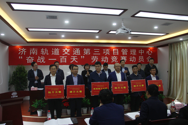 10月11日,济南市轨道交通集团第三项目管理中心召开“奋战一百天”劳动竞赛动员会。济南轨道交通集团党委副书记吕建新,副总经理周建国出席会议。集团党委副书记、副总经理刘相华代表施工方参加了启动仪式。