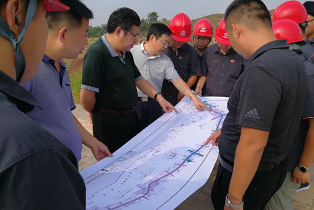 9月23日,集团党委副书记、总经理牟晓岩,副总经理吕守明一行到二分公司承建的赣州市客家大道西延工程指导工作。