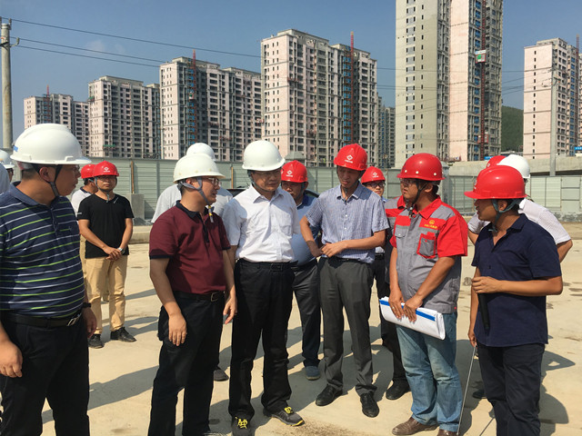 8月15日下午,济南轨道交通集团有限公司党委副书记、总经理修春海,副总经理周建国一行,到集团承建的轨道交通R3线龙洞停车场项目部检查指导工作。集团党委副书记、副总经理刘相华陪同。