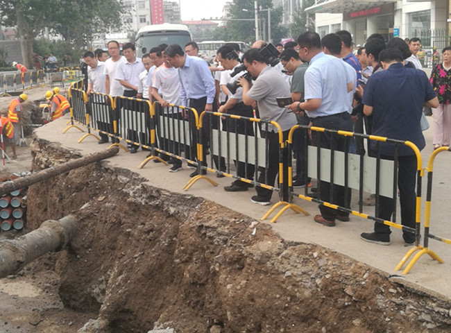 在山师东路市政道路改造工程施工现场,王文涛书记听取施工情况汇报后,对施工进度表示满意,并强调指出,要建设一条崭新的山师东路展现在泉城人民面前,为“建绿透绿、还路于民”的市政工程建设起到良好的模范作用。王文涛书记现场察看饮虎池街工程,对工程建设情况表示满意,他鼓励建设者为建设美丽泉城多做贡献。