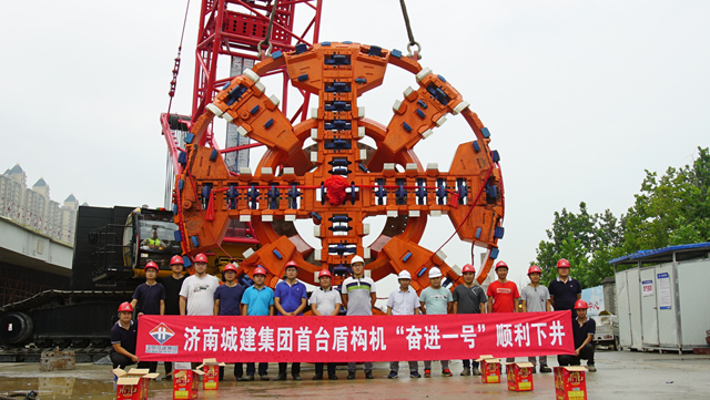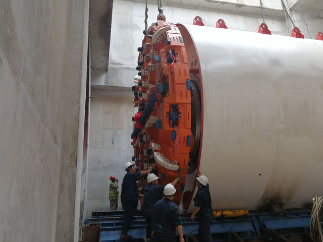 7月19日上午,“奋进一号”盾构机最后一个大部件---刀盘顺利下井安装到位。从本月12日至此,“奋进一号”盾构机所有主机部件全部顺利吊装下井,盾构机进入井下组装调试阶段。