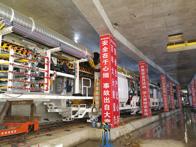 “奋进一号”盾构机正在进行井下组装调试工作,同时盾构施工龙门吊、砂浆站、电瓶车等后配套设备将陆续到场安装。全部准备工作结束后,“奋进一号”盾构机将从R3线王舍人站始发,向裴家营站掘进,全程2.8公里。另外,“奋进二号”盾构机也即将验收下线,届时将与“奋进一号”盾构机在王裴区间进行双线同时施工。