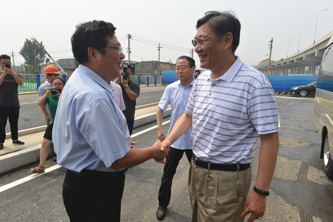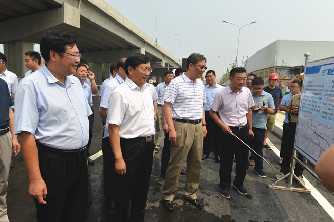 7月1日上午,省委副书记、市委书记王文涛,市委副书记、市长王忠林,市委常委、副市长张海波,市委常委、秘书长蒋晓光,市政府秘书长毛华铭以及市交通委主任贾玉良、总工程师姜春华,察看集团承建的二环东路南延、工业北路快速路、二环西路南延快速路网建设及关键节点通车情况,并慰问一线施工人员。集团党委副书记、总经理牟晓岩,副总经理吕守明、王翔及相关部门负责人现场陪同察看。