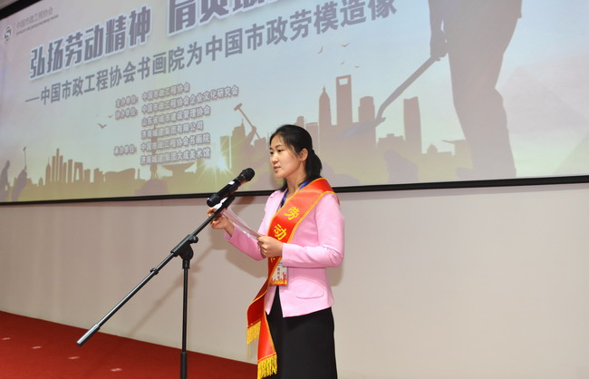首先,汤继沂董事长发表了热情洋溢的致辞。他指出:市政行业劳模和先进人物,是无数拼搏奉献的市政人的杰出代表。他们在城市建设过程中不仅创造了巨大的物质财富,也铸就了艰苦创业、勇于创新、敢为人先的精神品格,推动着中国市政建设事业蓬勃发展。市政行业一向崇尚劳模精神、工匠精神。本次举办的劳模肖像展及劳模事迹演说活动,是在全国市政工程行业讴歌劳动者,赞扬劳动美,崇尚劳动,让劳动者更光荣的重要举措。通过活动的开展,营造全行业学习劳模、争当劳模的良好氛围,让劳模精神成为凝聚全国市政行业广大干部群众干事创业、拼搏进取的重要精神力量,让“劳模精神”、“工匠精神”在工程建设实践中得以发扬光大。