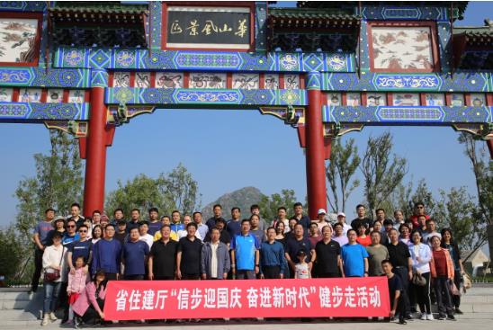 9月26日,由山东省住房和城乡建设厅主办的“信步迎国庆、奋进新时代”健步走活动在华山公园成功举行。省住建厅厅长王玉志,建设集团副总经理许为民,集团总经理牟晓岩,及50余人参加了此次活动。
