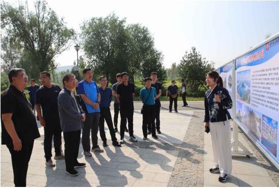 王玉志厅长(前排左四)听取公园建设情况汇报