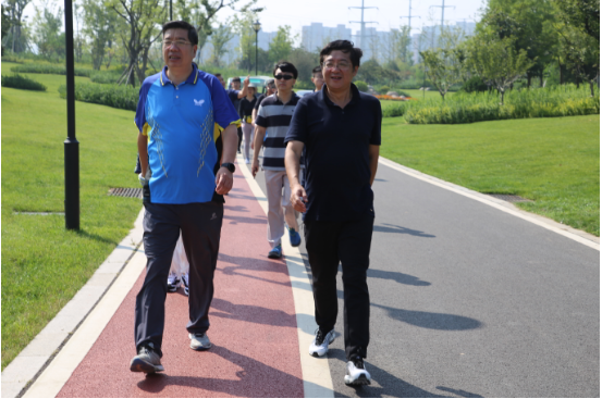 王玉志厅长宣布活动正式开始。参与者带着自己的热情融入自然,激发自我潜能,感受湖、桥、宫、路、景为一体的环湖赛道,在绿树鲜花掩映的园路上健步如飞,展现了大家昂首奋进的精神风貌。