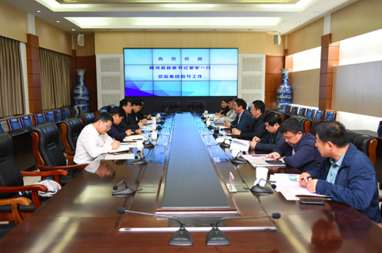 10月13日下午,商河县委书记翟军、副县长张成伟一行到集团指导工作。集团总经理牟晓岩,副总经理吕守明,总工程师许庚,副总经理宫庆华、马烽等在四楼会议室参加座谈交流。