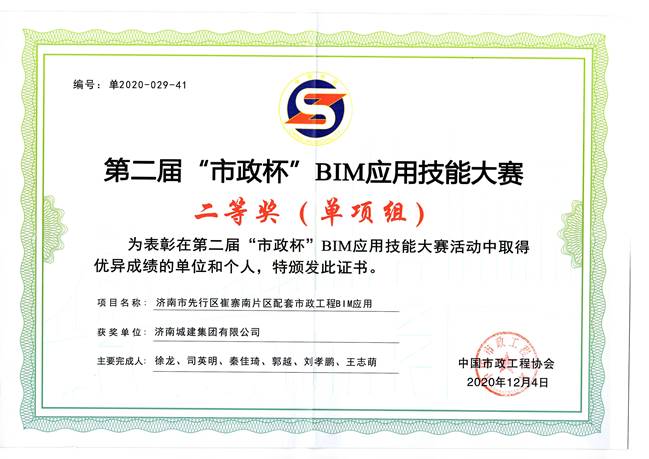 2020年度,集团BIM应用技术硕果累累,陆续参加了“第五届中建协BIM大赛”“山东省建筑业协会第二届BIM应用成果BIM成果竞赛”“龙图杯”(第九届)全国BIM大赛等9项BIM技术赛事,荣获各类奖项共计10项。