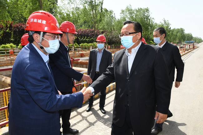 5月6日,济南市委副书记、市长孙述涛察看集团济阳区市政设施改造工程。集团党委书记、董事长、总经理牟晓岩,党委副书记、副总经理刘相华等参加活动。