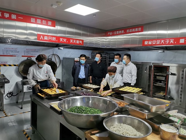 5月17日上午,集团纪委书记王维锋、工会主席朱相波,到集团科研楼食堂察看管理工作。