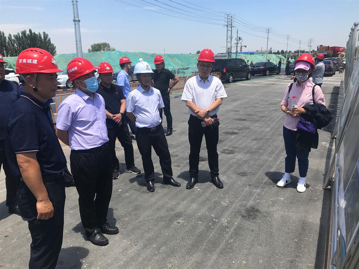 在施工现场,马军院士详细听取了黄河大道一期工程项目概况、工程进展情况、施工环境等方面的汇报,对安全文明及绿色施工给予高度认可。他强调,黄河大道工程是一项重大基础设施建设工程,对建设工程中环境科学的各项标准要进行深入探讨,严格执行“四节一环保”等施工标准,合理安排城市各项功能,促进城市居住、就业等合理布局,达到有效降低城市交通能源消耗的共同目标。