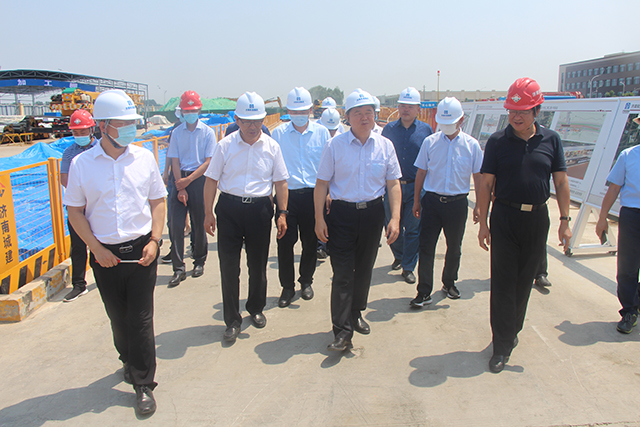 8月3日上午,山东省发展改革委副主任关兆泉察看集团承建的济南轨道交通3号线二期工程。济南轨道交通集团董事长陈思斌、副总经理刘凤洲,集团党委书记、董事长、总经理牟晓岩,党委副书记、副总经理刘相华参加活动。