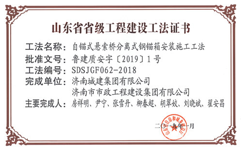 集团“自锚式悬索桥分离式钢锚箱安装施工工法”被评为山东省省级工程建设工法