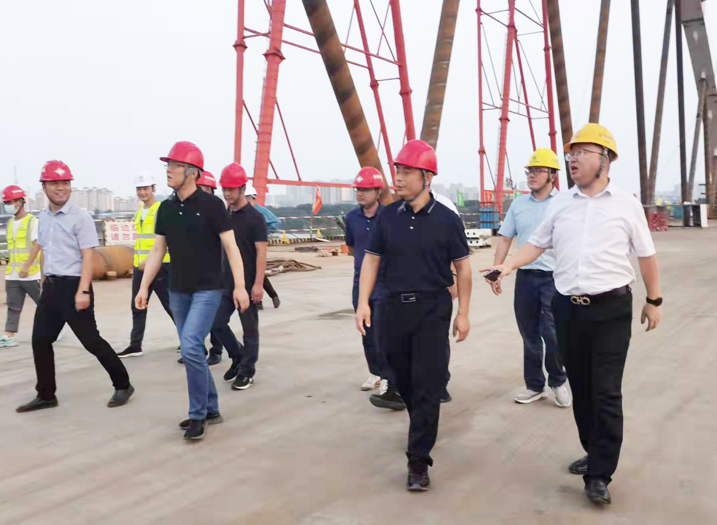 9月9日,集团副总经理史红军、王翔察看六分公司泰州青年路北延新通扬运河桥工程并慰问一线职工。