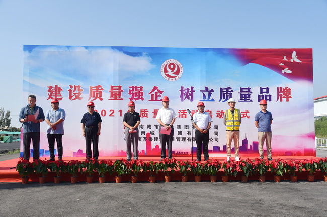 9月9日下午,集团在济南新旧动能转换先行区智慧物流园区工程项目部举行2021年“质量月”启动仪式。济南建设集团质量安全部副部长王勇,工程四部副部长郭静,集团总工程师许庚,以及相关职能部室、分(子)公司质量负责人等共计100余人参加仪式。