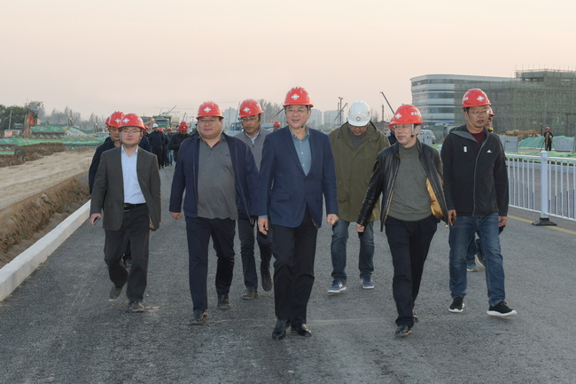 牟晓岩董事长一行来到黄河大道一期工程三标段施工现场,自南往北一路步行全线察看了工程施工情况,并现场听取了工程施工进度安排、施工组织、施工管理等各项工作。他对工程施工给予充分肯定,对现场管理人员表示慰问,并勉励大家要充分发扬“创新、拼搏、团队、奉献”的城建铁军精神,继续抓好景观绿化、立沿石安装、会展广场石材铺设、慢车道及人行道结构层等后续施工任务,做好现场安全文明施工管理,保护好既有道路路面整洁,为圆满完成施工任务而继续不懈奋斗。