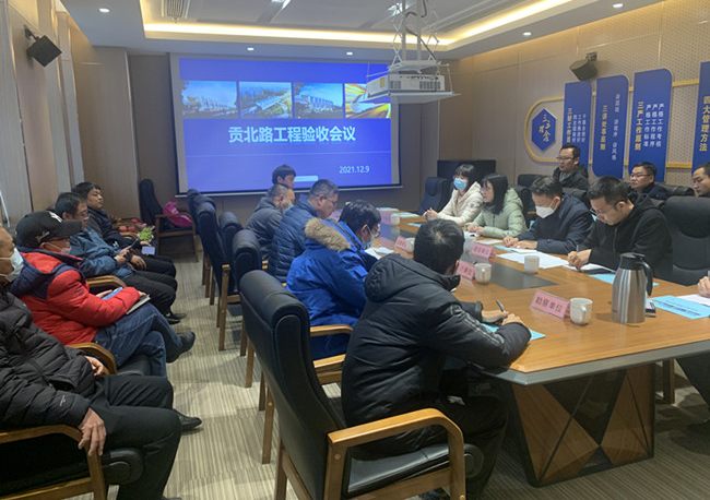 会议首先由施工单位、监理单位、勘察单位和设计单位汇报工程相关情况,然后验收组对现场及内业资料进行了查看。最后验收小组一致认为,该项目符合设计及规范要求,一致同意贡北路工程通过竣工验收。