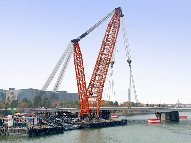 为顺利完成主桥钢箱梁吊装,项目部按照设计方案和既定目标,科学部署、周密安排,采用立体施工、多点开工、全穿插工序安排等系列举措,在确保工程质量和施工安全前提下,高效有序推进项目建设。