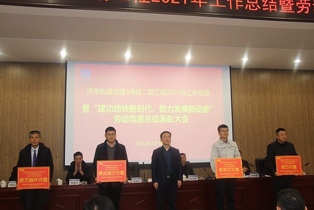 近日,济南轨道交通集团建投公司组织召开“建功地铁新时代、助力发展新动能”劳动竞赛表彰大会。集团济南轨道交通3号线二期工程项目部荣获“2021年优秀集体”称号,获得节点目标奖励28万元,项目部6位同志荣获“先进工作者”称号。轨道集团建投公司副总经理石锦江,集团党委副书记、副总经理刘相华参加表彰大会。