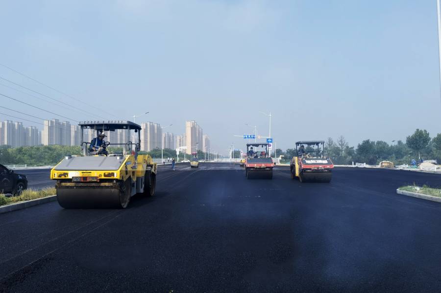 近日,济南市物流港园区市政设施配套一期工程(横五路)施工一标段沥青面层摊铺施工圆满完成。