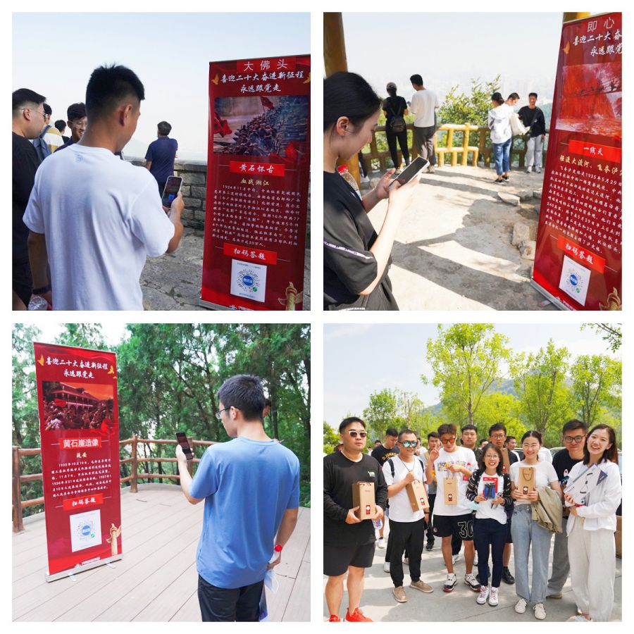 上午8点,青年职工们齐聚佛慧山景区入口,开始号令一经发出,各小分队迅速规划路线,开展登山行动。活动在景区共设置五个节点,分别对应长征路中“瑞金、血战湘江、强渡大渡河、飞夺泸定桥、爬雪山、过草地、成功会师”等红色故事,每个节点关卡设置答题小程序码,参与青年扫码答题方可继续前行。