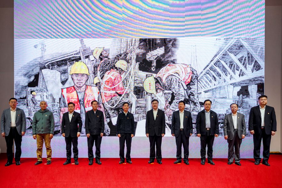 随后,伴随着铿锵有力的悦动旋律,出席活动领导共同为《建设者—济南黄河公路大桥工程纪事》作品揭幕,以集团承建的济南黄河公路大桥扩建工程建设者为背景题材创作的作品徐徐展开,标志着美术作品展正式开幕。为热烈庆祝党的二十大胜利召开,深入学习贯彻习近平新时代中国特色社会主义思想,弘扬优秀传统文化,展现泉城十年蝶变跃升的光辉历程和巨大成就,描绘一线建设者斗志昂扬、踔厉奋发的精神风貌,本次展览特邀52位全国知名艺术家,聚焦新时代重大现实题材、黄河文化、“二安”文化、泉文化、红色文化及廉洁文化等主题,创作并展出54件作品,形式包括国画、油画、漆画、漫画等题材,类型多样、制作精良,以独特的艺术视角和丰富的艺术语言描绘新时代、展现新时代、讴歌新时代。