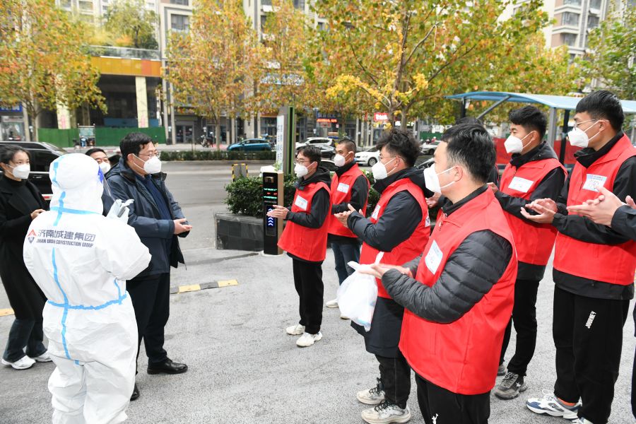 牟晓岩董事长指出,近年来集团认真落实市委、市政府和建设集团部署要求,精心组织,迅速行动,连续组织下沉社区助力全市疫情防控工作,充分展现了国企责任和担当。他强调,当前我市疫情防控工作已经到了最关键最吃紧的时期,全体队员要继续扛好政治责任,牢记职责使命,发扬城建铁军精神,服从街道社区调配安排,在做好个人防护的同时协助社区打赢打好疫情歼灭战。集团各级党组织要全面做好下沉队员及家属的关爱帮扶工作,及时为下沉队员解决后顾之忧,众志成城、齐心协力,为构筑疫情防控坚实防线、战胜疫情贡献铁军力量。