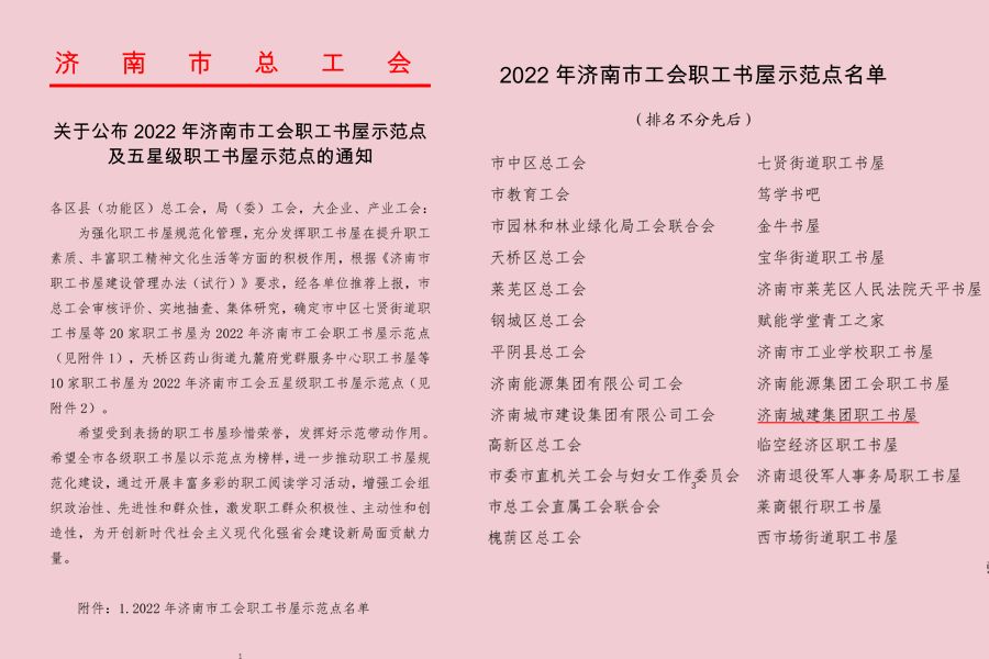 集团职工书屋获评“2022年济南市工会职工书屋示范点”