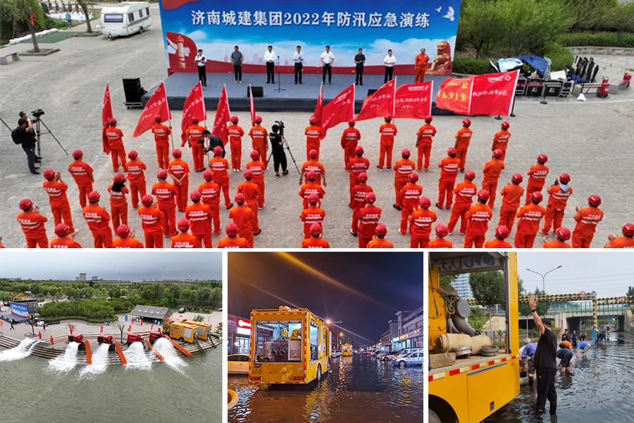 2022年,按照济南市建筑工程领域防汛防台风应急工作的统一部署安排,集团充分发挥行业资源和技术优势,积极履行防汛应急一线责任,严密组织防汛应急演练,严格遵守防汛应急待命纪律,紧急处置了济南南部山区、长清区园博园、天桥区东宇大街、联四路等地突发灾情险情,以及济阳轻轨、黄河大道、S103旅游公路等工程排水作业,用大爱和担当全力保障人民群众生命财产安全。