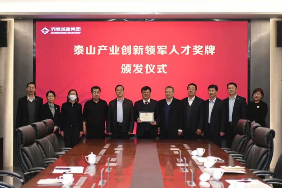 随后,耿玉远局长为集团首席专家孙杰颁发了“山东省泰山产业创新领军人才”奖牌。他表示,山东省泰山产业创新领军人才是省委组织部认定的省级高层次人才,孙杰同志成功入选是城建集团科技创新能力和水平的直接体现,也是天桥区科技工作的亮点和样板。希望城建集团再接再厉、创新突破,推动企业科技创新工作再上新台阶,为天桥区创新发展作出新的更大贡献。